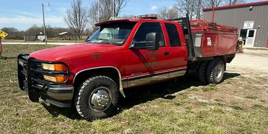 1995 Chevrolet 3500 4X4 brush truck. Carries 300 gallons and has a 200 GPM pump.
